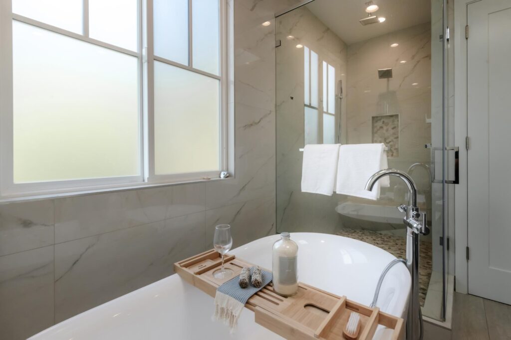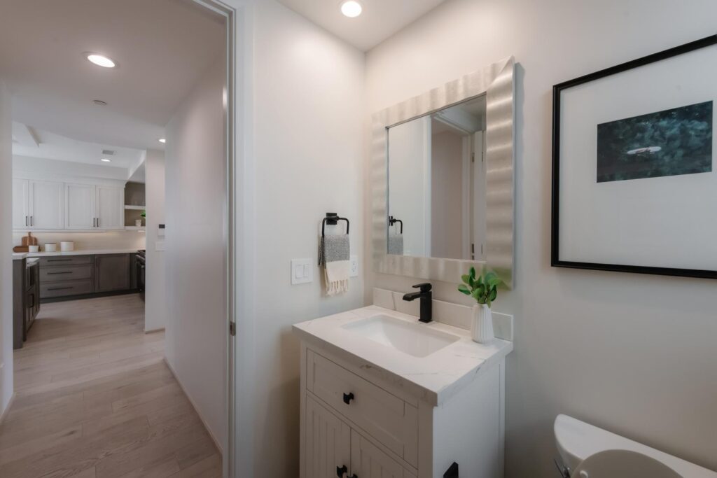 The thoughtful floor plan is flooded with natural light, creating a warm and inviting atmosphere in every room. With 4 bedrooms plus a loft, 3 full bathrooms, and 1 half bathroom, there is ample space for family and guests. Experience the best in newer construction, complete with gorgeous high-end finishes and the essential comfort of air conditioning. Also enjoy a sun drench deck off the third floor loft with amazing ocean breezes and a tiny ocean view.